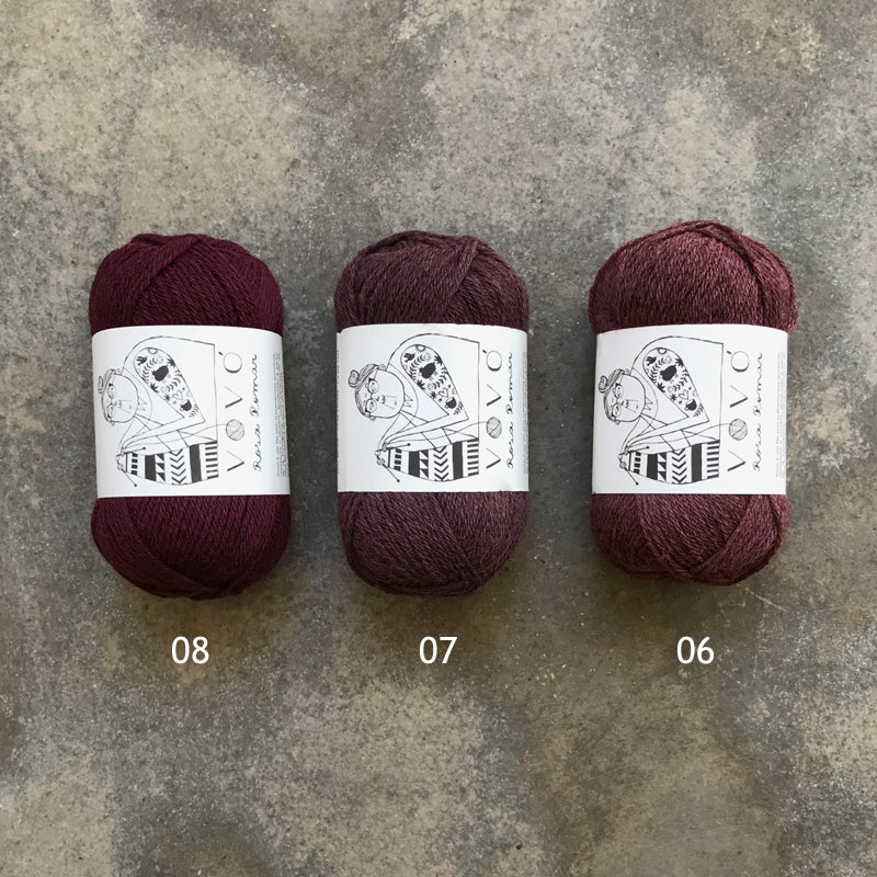 Vovó är ett 4-trådigt ullgarn helt utan superwash-behandling som är underbart att sticka med och mycket mångsidigt. Vovó passar både för strukturstickning och flerfärgsstickning, och plaggen behåller sin form tack vare garnets höga elasticitet.